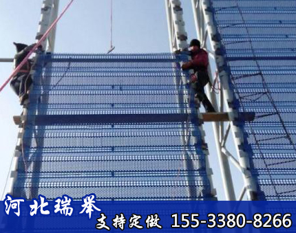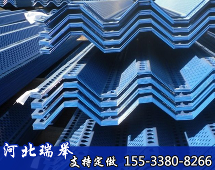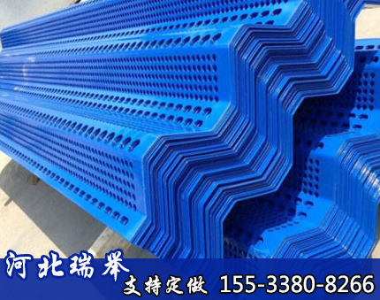 金属挡风抑尘板挡风板严格定位其结构、形状、厚度及孔形、孔径、开孔率,设计合理,当风通过挡风板时产生了湍流动量交换和能量损失,迅速降低大气来流的风速,降低了堆料表面的气流压力和剪切应力,因而降低了风对粉尘的携带能力,减少堆料的起尘率,从而达到挡风、抑尘治理环境的目的。